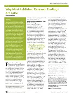 - ↑ Ioannidis, John P. A. (2005). "Why Most Published Research Findings Are False". PLOS Medicine. 2 (8) e124. doi:10.1371/journal.pmed.0020124. ISSN 1549-1277. PMC 1182327. PMID 16060722.