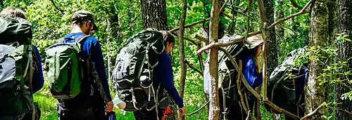 The term "wilderness therapy" is sometimes used interchangeably with "challenge courses, adventure-based therapy, wilderness experience programs, nature therapy, therapeutic camping, recreation therapy, outdoor therapy, open-air therapy and adventure camps."[2] The lack of a consistent definition has created problems with comparing studies into the effectiveness of programs.[2] To address this, an integrated definition of a wilderness therapy program is offered as one which "utilizes outdoor adventure activities, such as primitive skills and reflection, to enhance personal and interpersonal growth."[2] Fernee et al. further distinguish wilderness therapy from adventure therapy by placing it within wilderness settings where the location and remoteness becomes a central part of the procedure, while also separating wilderness therapy from other forms of wilderness-based behavioural programs through the "clinical and therapeutic methods" that are applied.[3] Media has often interconnected the term "boot camp" with wilderness therapy as a way to help people visualize and describe the physical and mental exercises adolescents are urged to do while apart of these programs.[4] This idea may be misleading to the public because boot camp exercises are not effective treatments for substance abuse and behavioral disorders.[4]