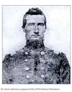 The most detailed account is in a sworn (notarized) statement from Dr. Jarvis J. Johnson (1825–1899), of Martinsville, Indiana,[74] who was with General Banks when Union troops entered Winchester, and was the first doctor to enter the building.[72]