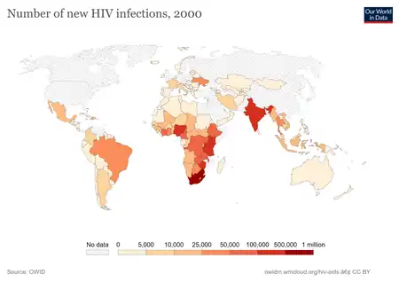 - ↑ "HIV and AIDS Epidemic Global Statistics". HIV.gov. Archived from the original on 18 April 2020. Retrieved 26 October 2024.