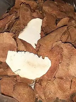 - ↑ Esteban CI. (2009). "Interés medicinal de Poria cocos (= Wolfiporia extensa)" [Medicinal interest of Poria cocos (= Wolfiporia extensa)]. Revista Iberoamericana de Micología (in Spanish). 26 (2): 103–7. doi:10.1016/S1130-1406(09)70019-1. hdl:10017/7998. PMID 19631158.