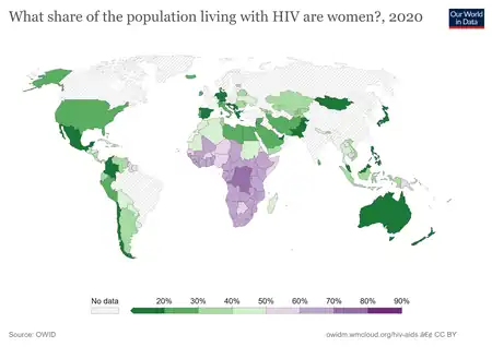 - ↑ 14.0 14.1 "amfAR :: Statistics: Women and HIV/AIDS :: The Foundation for AIDS Research :: HIV / AIDS Research". www.amfar.org. Archived from the original on 2022-01-07. Retrieved 2019-10-04.