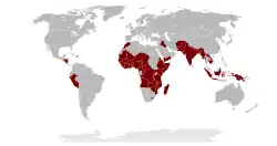 World Health Day 2014 put the spotlight on some of the most commonly known vectors – such as mosquitoes, sandflies, bugs, ticks and snails – responsible for transmitting a wide range of parasites and pathogens that can cause many different illnesses. Mosquitoes, for example, transmit malaria – the most deadly vector-borne disease, causing an estimated 660 000 deaths annually worldwide – as well as dengue fever, lymphatic filariasis, chikungunya, Japanese encephalitis, and yellow fever.[14] More than half of the world's population is at risk of these diseases.