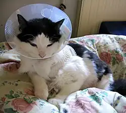 An Elizabethan collar may be used on pet animals to prevent them from biting an injury or excessively licking it, which can cause a lick granuloma. These lesions are often infected by pathogenic bacteria such as Staphylococcus intermedius.[39] Horses that lick wounds may become infected by a stomach parasite, Habronema, a type of nematode worm. The rabies virus may be transmitted between animals, such as the kudu antelopes by wound licking of wounds with residual infectious saliva.[40]