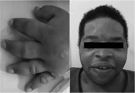 | Images of the dysmorphology examination typical of Coffin-Lowry syndrome | |