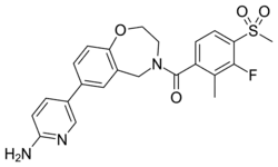 - ↑ Takeuchi CS, Kim BG, Blazey CM, Ma S, Johnson HW, Anand NK, et al. (March 2013). "Discovery of a novel class of highly potent, selective, ATP-competitive, and orally bioavailable inhibitors of the mammalian target of rapamycin (mTOR)". Journal of Medicinal Chemistry. 56 (6): 2218–34. doi:10.1021/jm3007933. PMID 23394126.