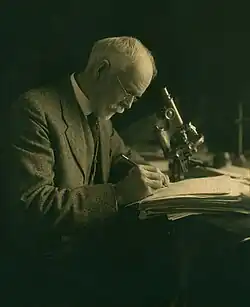 Nettie Stevens (working with beetles) and Edmund Beecher Wilson (working with hemiptera) are credited with independently discovering, in 1905, the chromosomal XY sex-determination system in insects: the fact that males have XY sex chromosomes and females have XX sex chromosomes.[37][38][39] In the early 1920s, Theophilus Painter demonstrated that sex in humans (and other mammals) was also determined by the X and Y chromosomes, and the chromosomes that make this determination are carried by the spermatozoa.[40]