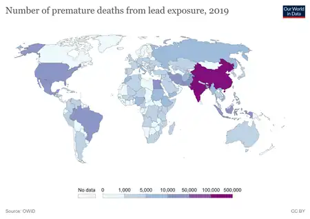 - ↑ "Almost 1 million people die every year due to lead poisoning, with more children suffering long-term health effects". www.who.int. Archived from the original on 28 July 2024. Retrieved 28 July 2024.