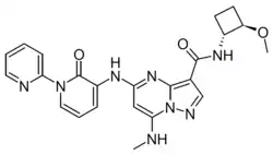 Zasocitinib (TAK-279, NDI-034858) is a drug which is an orally active, highly selective, allosteric tyrosine kinase 2 (TYK2) inhibitor. It has been researched for various inflammatory conditions including psoriasis, psoriatic arthritis and Crohn's disease.[1][2][3] It is significantly more selective than earlier compounds over side targets such as JAK1, which is hoped to give it an improved side effect profile.[4]