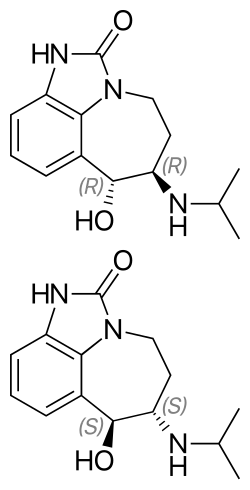 Zilpaterol has two chiral carbons and consequently four optical enantiomers. These enantiomers are: (6R,7R)-, (6R,7S)-, (6S,7R)- and (6S,7S)-. RU 42173 corresponds to racemic trans-zilpaterol hydrochloride, a mixture of the (6R,7R)-(−)- and (6S,7S)-(+)-enantiomers.[1]