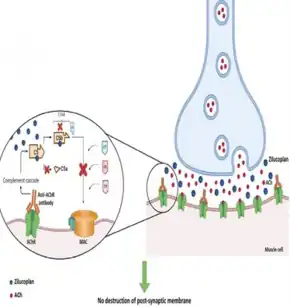 6. Howard JF, Vissing J, Gilhus NE, Leite MI, Utsugisawa K, Duda PW, Farzaneh-Far R, Murai H, Wiendl H (May 2021). "Zilucoplan: An Investigational Complement C5 Inhibitor for the Treatment of Acetylcholine Receptor Autoantibody-Positive Generalized Myasthenia Gravis". Expert Opinion on Investigational Drugs. 30 (5): 483–493. doi:10.1080/13543784.2021.1897567. hdl:11250/2770699. PMID 33792453. S2CID 232482753.