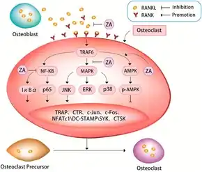 - ↑ Wang, Biao; Zhan, Yi; Yan, Liang; Hao, Dingjun (25 August 2022). "How zoledronic acid improves osteoporosis by acting on osteoclasts". Frontiers in Pharmacology. 13. doi:10.3389/fphar.2022.961941. ISSN 1663-9812.