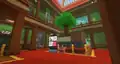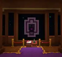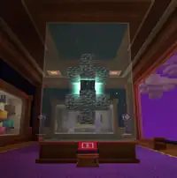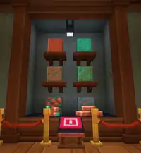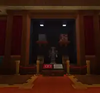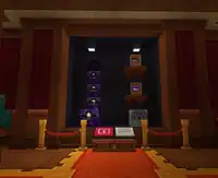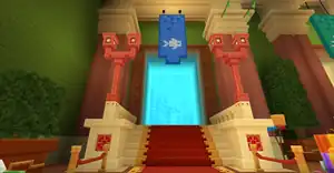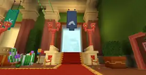 After climbing a set of stairs into the building, two more iron golem guards open the doors to the Hub, where the Party Villager is waiting for the player. Another cutscene follows, where the player is given the sticker book item, before the camera shows off the interior of the Hub, as the Party Villager proclaims "Happy birthday, Minecraft!"