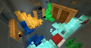 Use the "Switch Versions" item to solve the puzzles and travel between current day Minecraft and Alpha Minecraft.