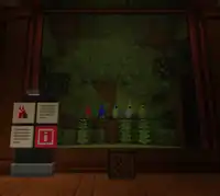 Marine Biologist | Elevated water temperature and CO2 levels can induce coral bleaching, causing the reefs to lose their vibrancy. Interact with the Lever to restore life to the Coral Reef! | An NPC standing next to a lever, which can increase or decrease the temperature of the salmon exhibit. If increased, the salmon die, becoming skeletons swimming in yellow water. If decreased, they come back to life. | |