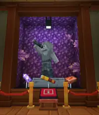 In the center of the Hub is a gift shop, staffed by Party Villager. There, they are tasked with collecting all 53 stickers, being rewarded a different Baby Mob for each milestone. Across from the Party Villager, who helps keep count of stickers collected, there are two anvils with floating name tags, that the player can use to name Baby Mobs if desired. If they want to remove a baby pet, they are given an item that can despawn them while inside of the gift shop.