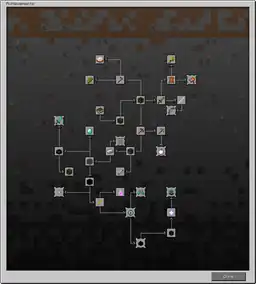 The Java Edition achievement system involved a tree composed of achievements. Originally the interface showed the achievement tree on the left, and a 'mini-map' of the tree on the right. The mini-map was removed in the final version, which then simply showed the tree. The background of the tree mimicked the world with dirt at the top with stone spanning below, bedrock at the bottom, and ores distributed as they would be in the world. By clicking and dragging, one could view different branches of the achievement tree. Using the scroll wheel on the mouse zoomed in and out of this display, making it easier to see, at a glance, what had been achieved and was still needed to achieve.