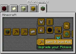 The advancement interface. The "Isn't It Iron Pick" advancement is selected.