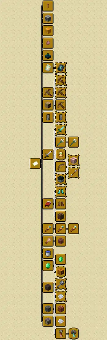 Advancement tree in the "Minecraft" tab (advancements in the same level may have a different order)