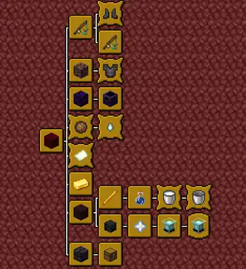 Advancement tree in the "Nether" tab (Advancements in the same level may have a different order)
