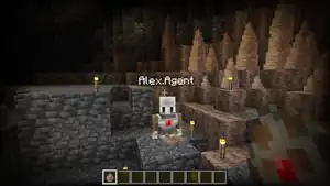 The agent is completely invulnerable to all forms of damage, although it is targeted by zoglins and wardens. Agents pass through blocks, vehicles, and projectiles, thus making it unable to ride a minecart or boat. Agents cannot be leashed.