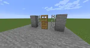 As with glass panes and fences, bars can be used to create narrow slits when placed between a door and a solid block. Mobs can see through and attack through these gaps, and arrows may be shot through them. Also as with fences and glass panes, arrows cannot be shot through bars themselves.