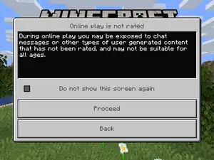 - Added a legal disclaimer before loading a world: a new information screen informs the player that "Online play is not rated".