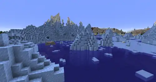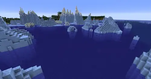 A partially frozen area of ocean, with large, broken up sheets of ice covering the water. This variant of ocean has a gravel seabed and is home to kelp, seagrass, squid, salmon, strays, and polar bears. |