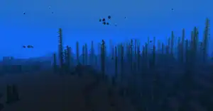 An ocean variant with bright teal water at the surface. It can contain coral reefs, sea pickles, seagrass, dolphins, tropical fish and pufferfish. |