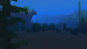 Like the frozen ocean, this ocean variant has a gravel seabed, with the occasional patch of sand or dirt. Additionally this ocean biome has dark indigo water. It is home to kelp, seagrass, cod, salmon, and dolphins. | |