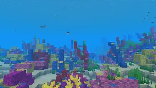 This ocean variant can be recognized by its light teal water and sandy seabed. It is home to kelp, seagrass, pufferfish, dolphins, tropical fish, and cod. |