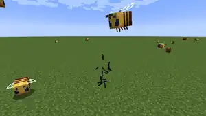 Bees also swarm and attack other mobs when damaged, for example, if a skeleton accidentally shoots a bee.