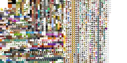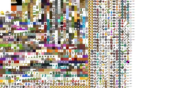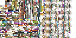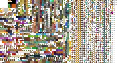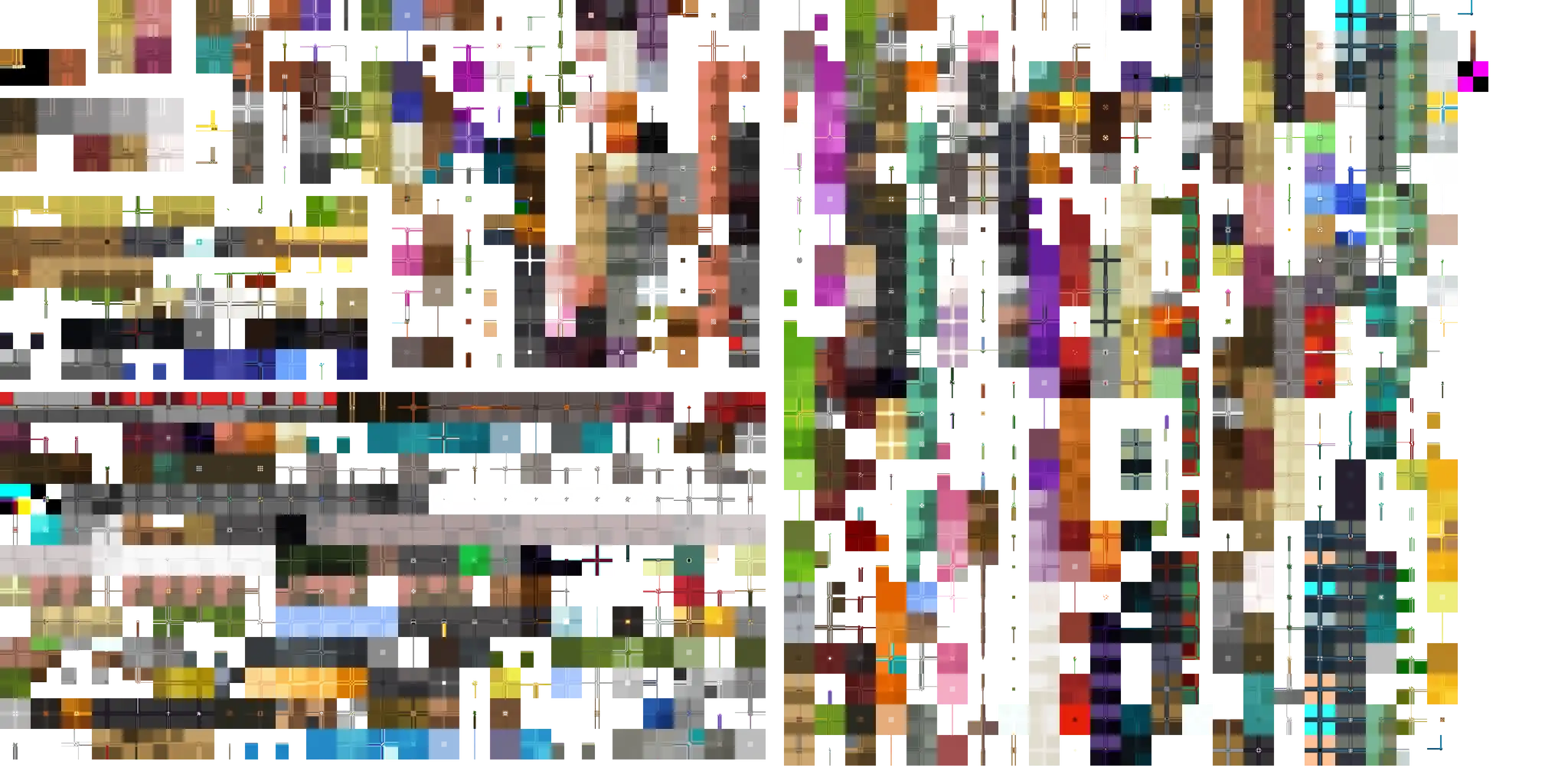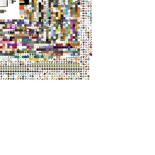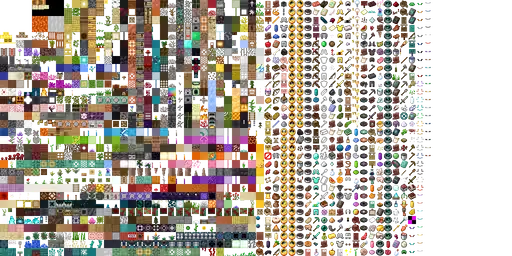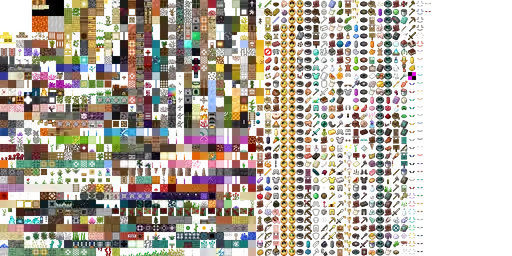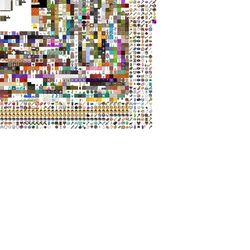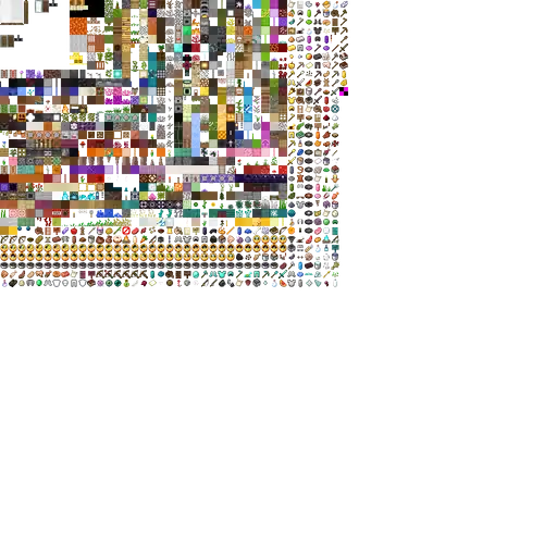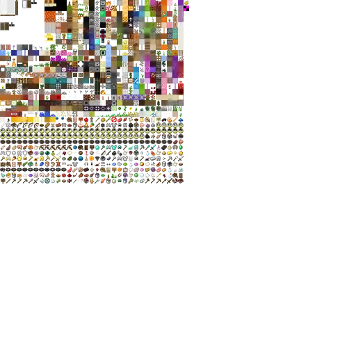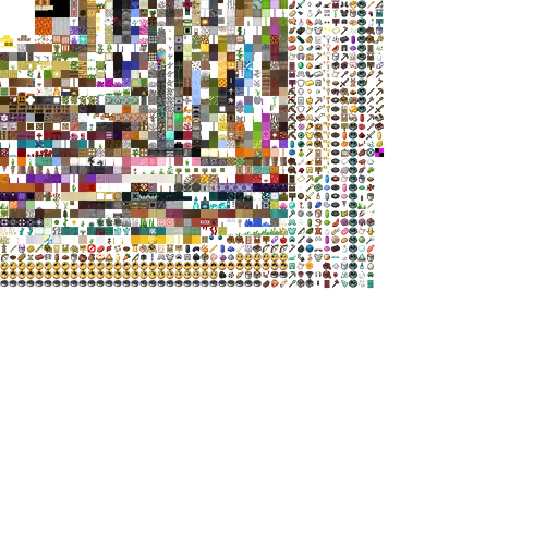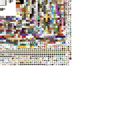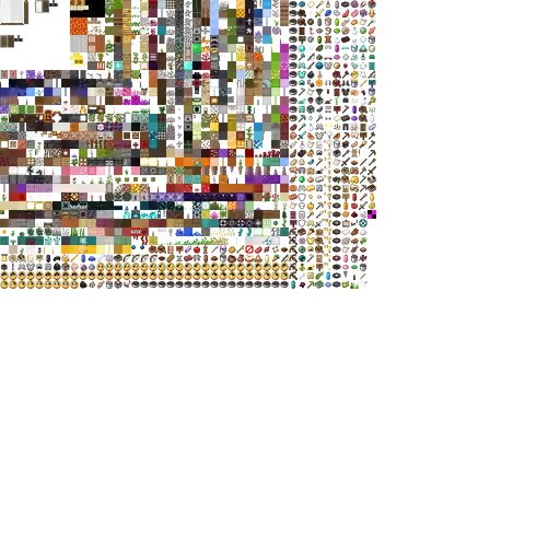 blocks.png-atlas is a fixed-width 1024×512-pixel[until JE 1.21.11] or 4096×2048-pixel[upcoming JE 1.21.11] file that is split into different 16×16-pixel squares for most blocks and items. Only the top left 1024×512 corner is actually filled with blocks and items in the base game default textures.