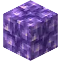 Budding amethyst is a fragile block found in amethyst geodes that grows amethyst clusters over time. It drops nothing if it breaks, and cannot be moved from where it is found.