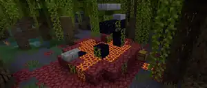 Occasionally, you’ll find a huge ruined portal, many blocks larger than a standard one. These seem to have once served some kind of ceremonial purpose, though it’s hard to say what that might have been. They’re big enough to fit a ghast through, which raises all kinds of terrifying questions.
