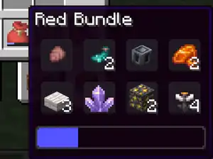 | Hovering over bundles now shows its contained items in special slots, similar to slots in the inventory. If the bundle is not full, it also has an empty slot with a plus on it. | |||||||||