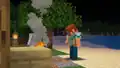 In a post-credits scene, Ari returns to the dolphin site with a yellow bundle, presumably having claimed the treasure. It is now night, with several monsters surrounding the beach, though none targeting Ari. Ari starts to place fish on a campfire, before staring at an enderman in the eyes.