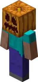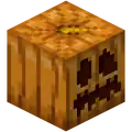 A carved pumpkin is a block obtained by using shears on a pumpkin. It is used to craft jack o'lanterns, build golems, and can be worn as a helmet.