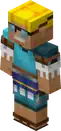 A swimmer wearing cyan with a bit of dark cyan swimsuit, with warm skin, light yellow hair, goggles, and a bright smile. Its clothes, a swimsuit with happy ghast with goggles floaters on both arms, with harness floatie the waist and sandals. | A simplified version of Ghast Rider Floatie, made to fit the limitations of skins. |
