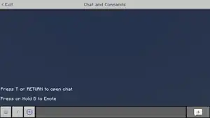- In Bedrock Edition, when a player joins a world or travels between dimensions, the "Open Chat Message" is shown exclusively to that player, which shows the keys to open the chat and to open the emote GUI. The message can be toggled in the accessibility settings and is not shown when using touch controls.