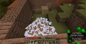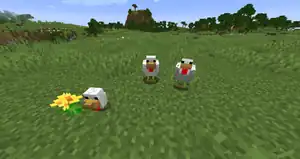 A chicken is a passive mob found in most grassy biomes, and the main source of raw chicken, feathers and eggs. They have three variants based on the temperature of the biome they spawn in.
