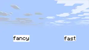 The appearance of clouds varies depending on the graphics settings used either on the specific clouds one[JE only] or the general graphics mode: