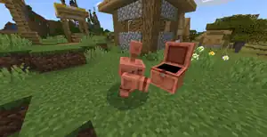 Upon creating a copper golem by placing a carved pumpkin or jack o'lantern next to a block of copper, a copper chest is generated at the location of the copper block. Both the chest and the golem are spawned with their oxidation state matching that of the block of copper, but do not generate waxed even when a waxed block of copper is used.