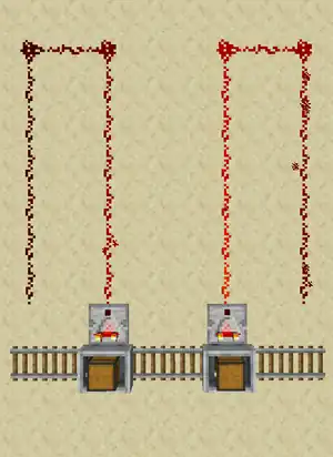 Example for signal strength of a full minecart (right) and a half-full one (left)