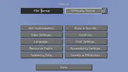 | v0.16.0 | Difficulty is now saved on a per-world basis instead of globally, and is now controlled via world settings. | ||||||