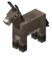 A donkey is a passive mob similar to a horse that, when tamed, can be saddled, ridden and equipped with a chest to transport items.