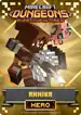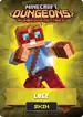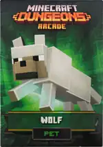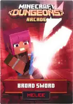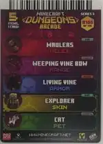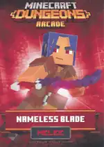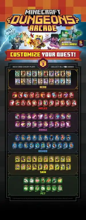 A card is a part of a game mechanic in Minecraft Dungeons Arcade, the arcade adaptation of Minecraft Dungeons. Each time a player starts or continues a game, a card is dispensed beneath their control panel, which can have its barcode scanned on the machine's scanners to equip a player with specific weapons, armor, pets and heroes. There are a total of 143 cards to collect: 60 base cards in the first series, an additional 38 in the second series, an additional 20 in the third series, and an additional 25 in the fourth series. Each card also has a foil version, although they have no extra effects on gameplay.