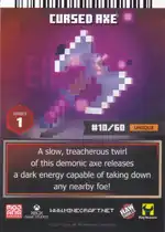 The player equips the cursed axe when the following cards are used in Minecraft Dungeons Arcade.
