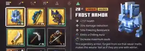Gilded gear is melee weapons, ranged weapons and armor that possess an extra built-in enchantment at tier I, II, or III. Gilded gear have increased enchantment costs to activate and upgrade the enchantments within the slots. Gilded items appear in the inventory with a gilded gold background and a golden tag adjacent to the rarity. On lower difficulties, the hero may receive a tier I enchantment, but on higher levels the hero can receive up to a tier III enchantment.