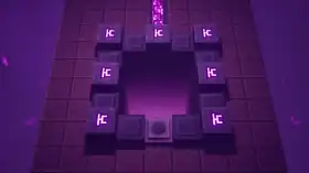 Fiery Forge is a factory built beneath a snowy mountain created by the Illagers, used to create the weapons and monsters used by the Arch-Illager's army. It consists of stone structures and bridges suspended over chasms of lava, and features forge machinery, crystals, torches, and villager statues. Before entering the main area of Fiery Forge, heroes must find the hidden cave opening leading into the forge from Fiery Forge Outside. After entering the main part of Fiery Forge, a lever next to a fallen redstone golem can be activated to reveal the entrance door of Fiery Forge Rune Room[note 1]. Halfway through the mission, eight highly-explosive redstone cores are found in an elevated forge labyrinth, and heroes must activate all of them in order to proceed further. More of these redstone cores can be found in a lava-filled arena near the end of the mission, which can be activated to damage the Redstone Monstrosity. After defeating the Redstone Monstrosity, the path towards the exit of the mission can be accessed, where a mining lift can be used to escape.